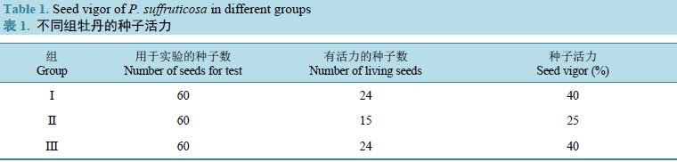实验选择正常生长的牡丹进行根部取样,使用以草木灰为主要成分的植物创可贴进行创伤处理并观察植株生长状况,期间采用TTC法测种子活力,采用组织化学方法测定丹皮酚的含量。(如图表)得出以下结果:取样后经植物创可贴处理的牡丹生长良好;与未经处理的植株相比,经处理的牡丹根中丹皮酚含量提高显著(P<0.01)。