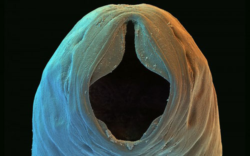 绦虫(Tapeworms):绦虫习惯用它头部顶端的钩子和吸盘将自己固定在宿主的肠道里。