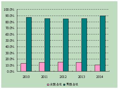 图1 2010~2014年国家杰出青年科学基金资助对象的性别占比