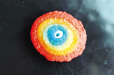 用丝蛋白制成的同心环状支架,可模拟新皮质的6个分层。每一环都被染成了不同颜色,并被分别填充了神经元。