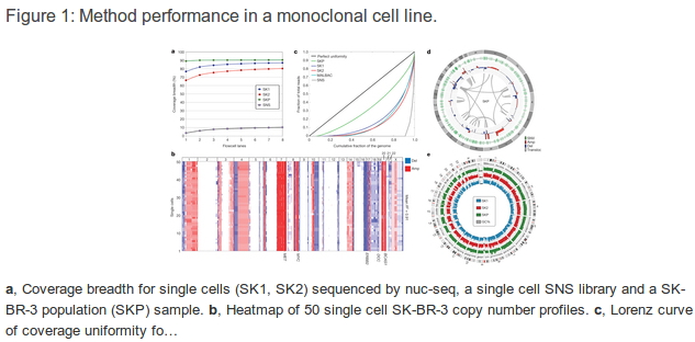 当细胞准备分裂时,细胞核内DNA会进行复制。通过筛选从而仅仅对新生的“双”核进行测序,nuc-seq可以利用此类复制,获得比之前大部分的测序技术更低的测序错误率。研究者采用靶向双链测序验证了他们的方法,这是一种对DNA双链进行测序,以鉴定突变的方法,具有超高的准确性。他们认为,使用nuc-seq对单细胞基因组进行测序,然后采用靶向深入测序进行验证,应该就可以将癌症中的基因组异质性检测出来。