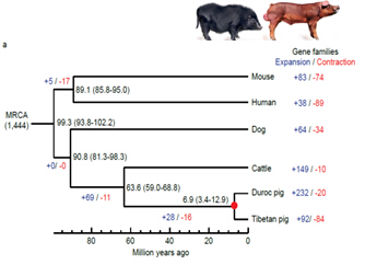 2013年,诺禾致源科技服务团队与四川农业大学李学伟、李明洲两位教授合作,利用高通量测序技术及生物信息分析策略,从基因组水平充分揭示了藏猪特有的高原环境适应性的分子机理,同时解析了四川盆地家猪在几千年的人工驯化过程中基因组中重要经济性状相关基因的进化方向。