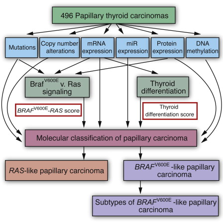 癌症基因组图谱是一个得到联邦政府资助的项目,旨在了解各种癌症类型的分子特征。这一项目已经发表了一些癌症类型,如乳腺癌、结肠癌、卵巢癌和肺癌的许多标志性论文。甲状腺癌是纳入最大样本量的研究之一,研究了近500个肿瘤。