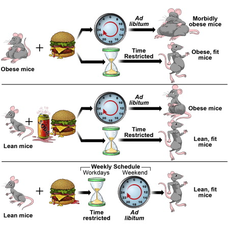 在此之前,Dr. Satchidananda Panda就曾发现限时进食有助于预防高脂饮食引起的肥胖。他的研究团队在这项新研究中,测试了其他挑战性的营养条件,并对已经患有肥胖症的小鼠进行了研究。