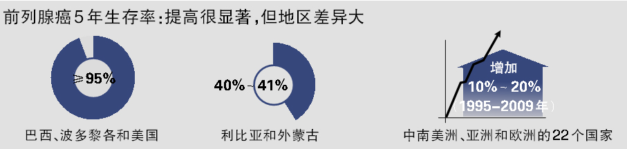 ●前列腺癌的5年生存率在全球范围内均有明显的提升。