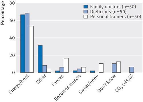 在本文作者进行的小调查中,很多人都答错了“减掉的脂肪会转化成什么”的问题。(正确答案为二氧化碳+水)