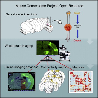 南加州大学的董宏伟(Hong-Wei Dong,音译)博士和他的研究小组采用神经元示踪技术构建出了小鼠大脑新皮层的连接图谱,揭示了新皮层中数百条神经元通路。这些数据为人们提供了一个宝贵的资源,有助于进一步研究整个大脑皮层的网络构造和功能。[文献]