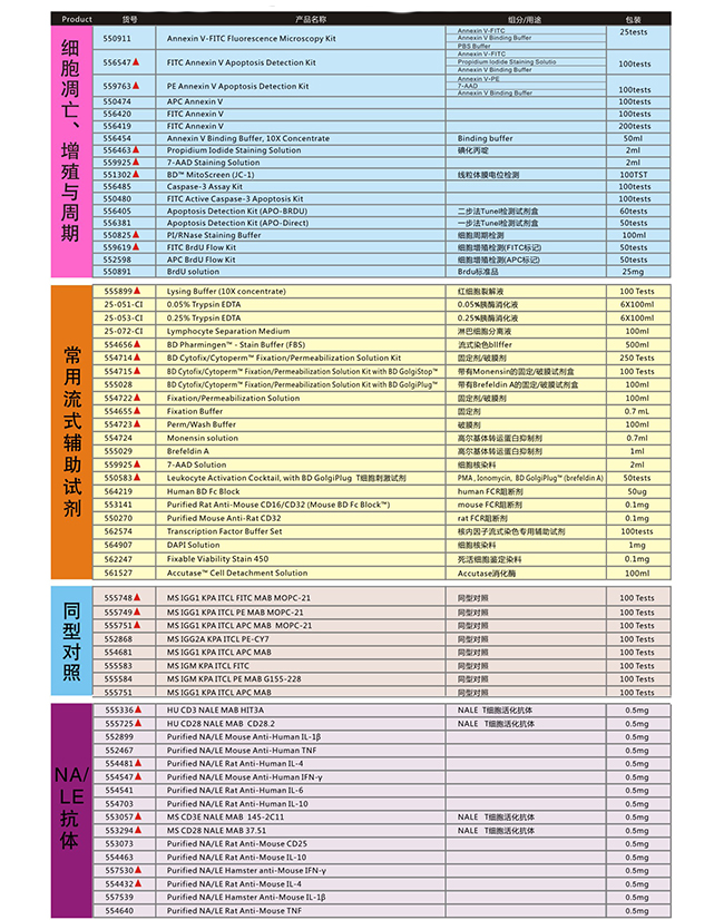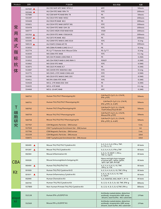 BD pharmingen 产品快速查询手册(带▲为热卖产品)