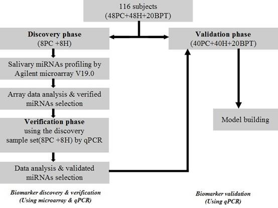该课题组研究人员是第一次在可切除性胰腺癌病人的唾液标本中利用Agilent 芯片技术检测了miRNA的表达谱(本研究中Agilent miRNA芯片服务由上海伯豪生物技术有限公司提供),并发现其与健康对照人的唾液miRNAs表达谱间有明显差异。课题相关的芯片检测技术由上海伯豪生物技术有限公司提供。同时成功地利用qPCR技术和logistic回归分析,验证了两种唾液miRNAs有望成为可切除性胰腺癌的分子标志物。