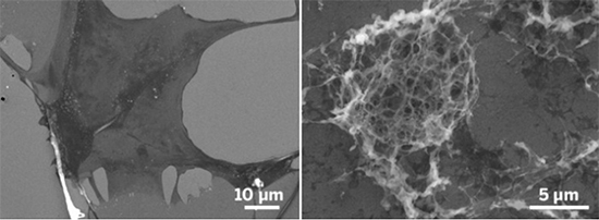 根据扫描电子显微镜下细胞的成像,骨癌细胞表面了形成了牢笼状的水凝胶。虽然引起细胞死亡的机制尚未清楚,但Uljin怀疑是由于纳米纤维牢笼窒息细胞所致:既不允许营养物质进入,也不允许细胞废物流出。