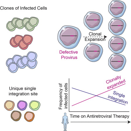 研究人员认为,潜伏病毒库或许匿藏在一类CD4 T细胞:帮助免疫系统记住特定病原体的长寿记忆细胞中。当这些细胞遭遇到它们从前看到过的病原体时,它们会刺激识别病原体的T细胞增殖,这一过程就叫做克隆扩增。以往的研究表明,克隆扩增对维持HIV潜伏病毒库至关重要。