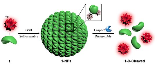 GSH和Casp3引起的组装及解组装过程控制19F信号“开-关-开”过程设计图