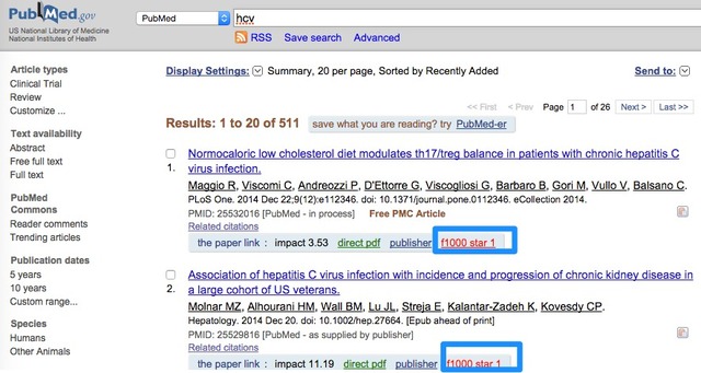 它的主要特色:提供科学家不断更新的会员指南,获得特定研究领域中重要的论文信息;重要论文的评价依据是以其科学成就而非在哪些期刊发表;提供研究者超过 5500 名顶尖科学家的一致推荐;有系统地组织并评价大量的科学论文信息。在 Pubmed 里面可以设置过滤条件,从而可以看到哪些文章被 F1000 所点评。应该说,被选入加以点评的,多是精品文献。