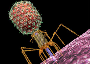 跟大多数病毒一样,噬菌体只是一团由蛋白质外壳包裹的遗传物质。不同的是,噬菌体一般都长有“尾巴”,它的作用是用来将遗传物质注入细菌体内。