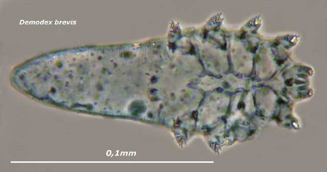 毛囊蠕形螨,上图为雄性,下图为雌性。