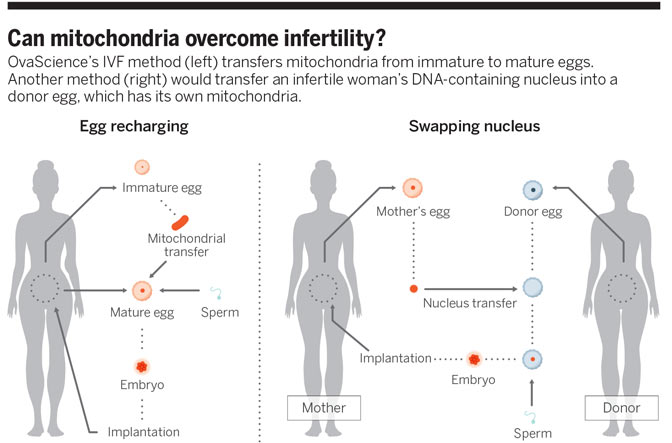 对于以上两种体外受精方式来说,其核心问题是:有缺陷或是衰老的线粒体是否确实会导致不孕不育;另外修复这个问题是否会让卵子重新恢复健康。位于马萨诸塞州坎布里奇市的生物技术公司OvaScience表示,该公司近日在旧金山一次会议上展示的研究结果回答了上述问题。在一群存在不孕症的女性中,该公司使她们怀孕的几率达到35%。“我们对此非常激动。”OvaScience的执行总监Michelle Dipp说。