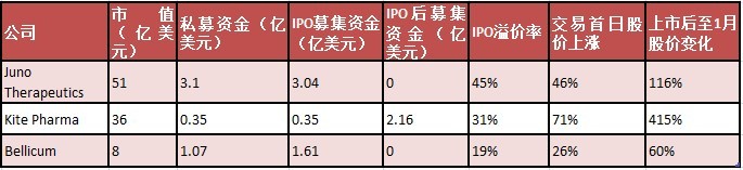 在去年的美国血液病学会(American Society of Hematology,ASH)年会上,CAR-T疗法出尽了风头,之后,大量的金钱涌入这一领域。会议后不久的12月19日,Bellicum和Juno同时在美国纳斯达克上市上市。另一家专注于CAR-T的法国公司Cellectis,原本在纽约泛欧交易所创业板(NYSE Alternext),现在也宣布计划在纳斯达克(Nasdaq)二次上市,融资1.15亿美元。