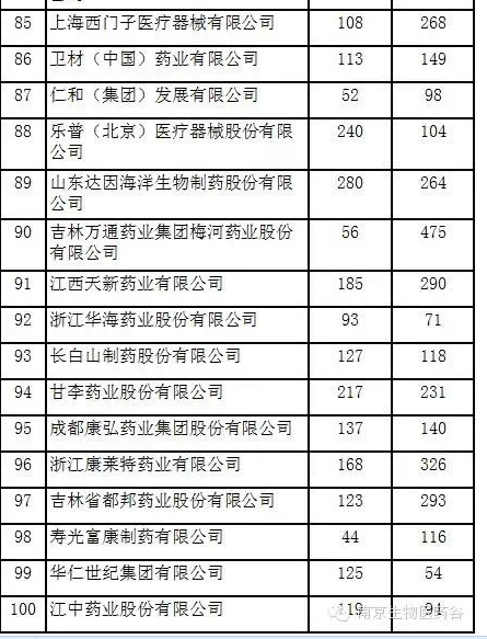 此外,北京泰德制药股份有限公司、双鹭药业两家公司表现也很出色,在资产总额和主营业务收入方面并未进入前100强,但是,在净利润排名中进了前40。下面是净利润排名前100的药企,同时列上了其主营业务收入和总产总额的排名,从排名对比中,可以看到各家药企的盈利能力。