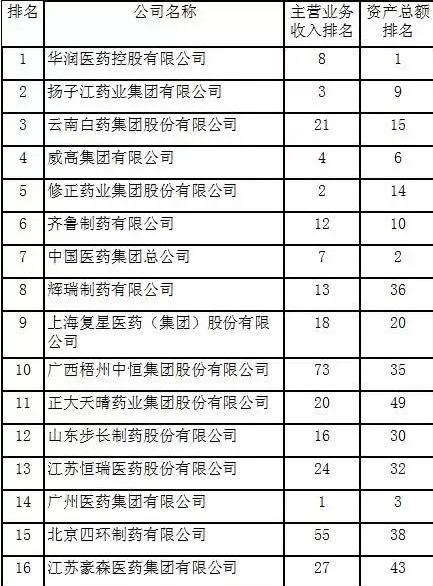 根据2014年12月统计快报,消费品工业司医药处整理了医药工业企业的资产总额、主营业务收入、利润总额三项主要指标企业排名情况。企业排名以工业企业法人单位为基础,对于以合并报表上报的企业,合并范围涵盖的下属公司不再单独列示。