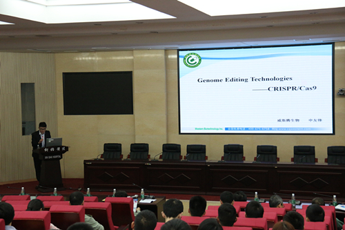 16日晚7:30,“cas9基因靶向修饰技术的临床应用”于新桥医院科教楼报告厅准时开展。本次讲座由高院长亲临现场主持,主讲人为重庆威斯腾生物联合高圣医药Cas9团队中国区负责人申友锋,各科室领导以及我司执行董事均参与了本次讲座。