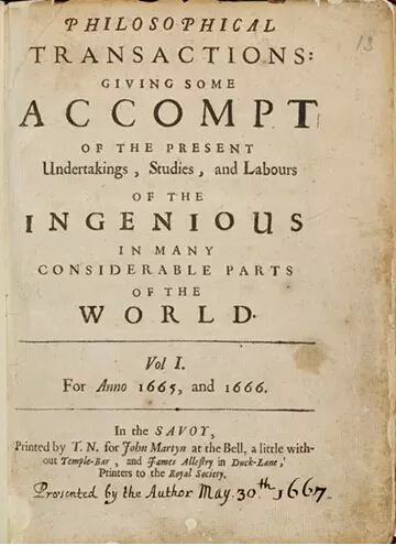 世界上第一本学术期刊《哲学学报》 图片来源:Royal Society