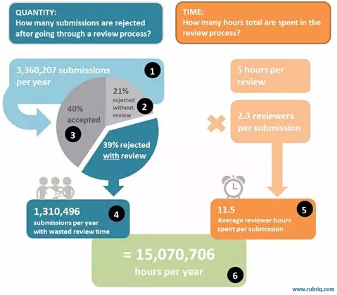 每年学术论文作者因拒稿而浪费的时间 图片来源:Rubriq