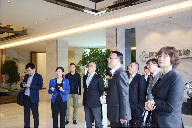 2015年4月22日上午,上海医药集团总裁左敏、副总裁刘彦君一行对医科产业园项目建设情况进行了考察,温江区委副书记余辉、温江区副区长何敏、温江区现代服务业园区管委会书记赵光强陪同,并与医科项目投资方成都连康投资有限公司常务副总张和平全程做了友好交流。