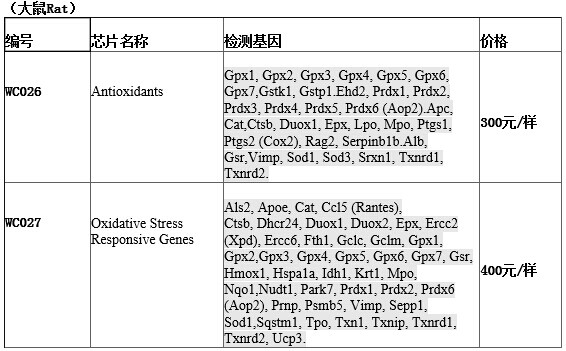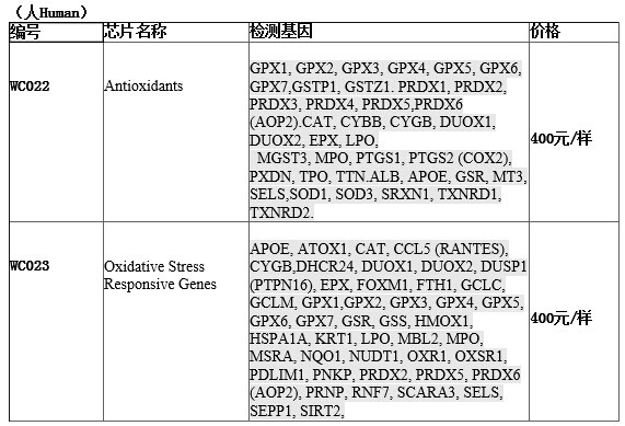 启因生物对氧化应激相关基因包括抗氧化剂、氧化应激反应基因实行促销活动,优惠价格见下表。