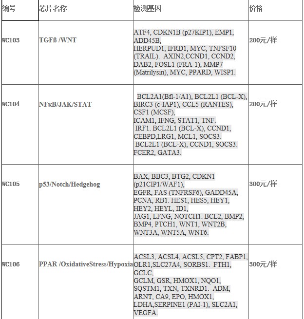 Hedgehog、 PPAR、 Oxidative Stress、Hypoxia等通路中的相关基因实行促销活动,优惠价格见下表。