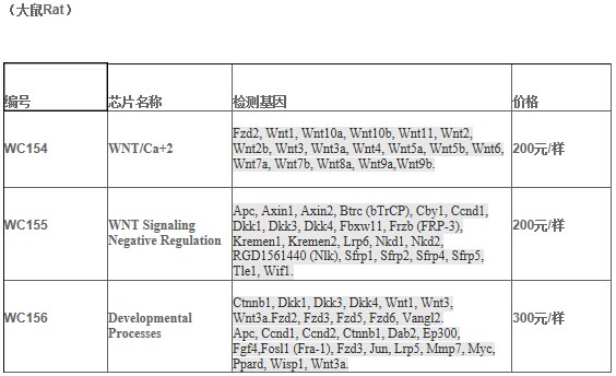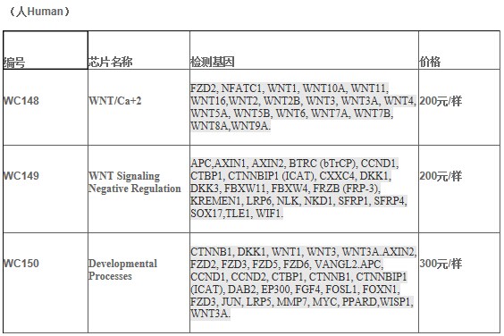 启因生物对Wnt信号通路的WNT/Ca+2,WNT信号负调控,发育过程的相关基因实行促销活动,优惠价格见下表。