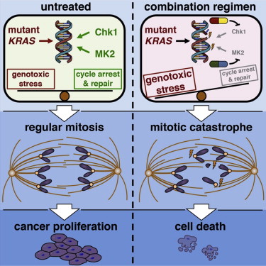 当前有一些Chk1和MK2抑制剂已进入到临床试验的不同阶段。作者们表示,将继续在KRAS或BRAF突变肿瘤中对联合抑制Chk1和MK2的策略进行临床评估。