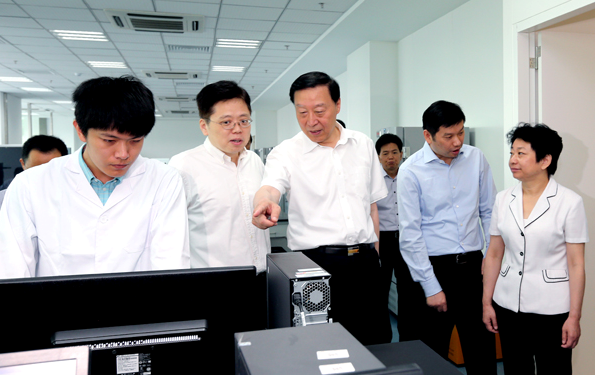 省委书记罗志军在生物医药谷内的南京高新生物医药公共服务平台公司,了解企业研发情况和发展状况。