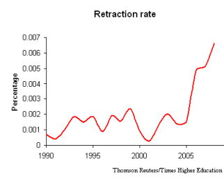 最后,来自汤姆逊路透的权威数据显示,近几年被撤稿的论文占所有发表论文的比例大幅度上升(参见下图),尽管,目前尚不清楚这个大幅上升是否主要由我天朝贡献,但是也至少表明,这个世界,想走“捷径”的人越来越多了。
