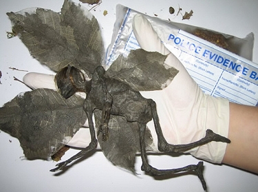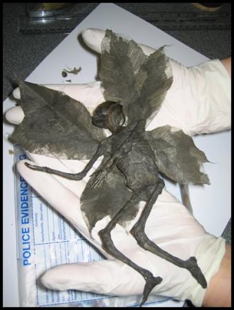 英国《泰晤士报》苏格兰在1982年的春天,考古学家菲尔博士审查了一个偶然的化石群,发现些微小和易碎的遗骸,在一个花岗岩上面,有一个类似精灵的化石,起初以为是昆虫之类,结果在细看一下,才发现这个这微小的僵化的骨骼,有四个翅膀,科学然而告诉我们,这样生物怎麼可能存在,科学家假想骨骼遗骸,怎麼在英国会有妖精化石,难到说恐龙时代,存在过似人类翅膀类型生物。考古学家菲尔博士证明这是真的妖精化石,并且在国际上公开他,所发现了这个奇怪的化石,引起很多科学家的争论和猜想,却被认为是假的化石,不过考古学家菲尔博士,却认为是真的,因为化石里面中有类似骨骼构造及血管,不管是不是真的或是假的,只能做参考。