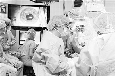 医生手持的针筒中装有由干细胞培育而成的视网膜色素上皮细胞。