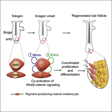 Coordinated Activation of Wnt in Epithelial and Melanocyte Stem Cells Initiates Pigmented Hair Regeneration