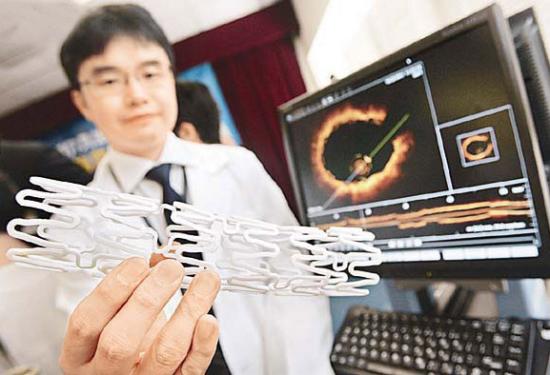 据介绍,传统的心脏血管扩张手术是为患者植入金属制支架,而支架会在手术后留在血管内。这款“全吸收式生物血管模架”则由可分解性塑胶物料制成,并在患者血管被修复后逐步减低支撑能力,于两年之内自然分解和消失,使患者血管壁恢复正常扩张及收缩。