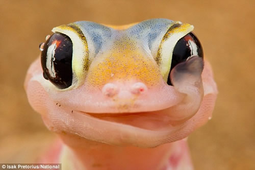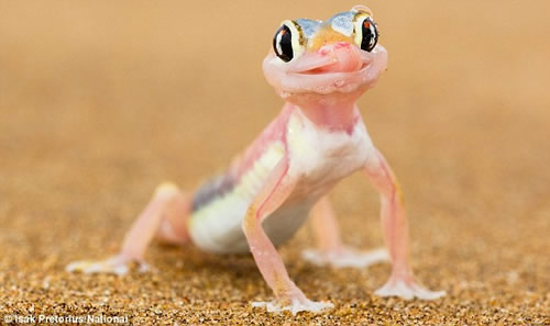 这精美的照片来自32岁的摄影师Isak Pretorius,花了三天时间才拍摄到这个小家伙,在沙丘上披着一身雾气。小壁虎伸出舌头从它的眼睛上舔食着清晨的露珠,它们会以一种非常优雅的姿态从大眼珠上舔到露珠,会反复五六次。