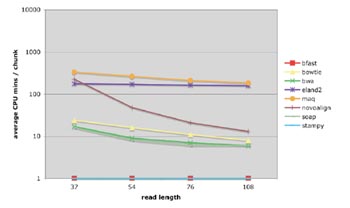 1. 系统运行时间,图一是几种软件对不同长度reads排序的时间消耗。
