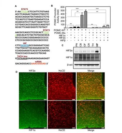 Figure 1. Regulation of HIF on POMC gene and HIF profile in the hypothalamus.