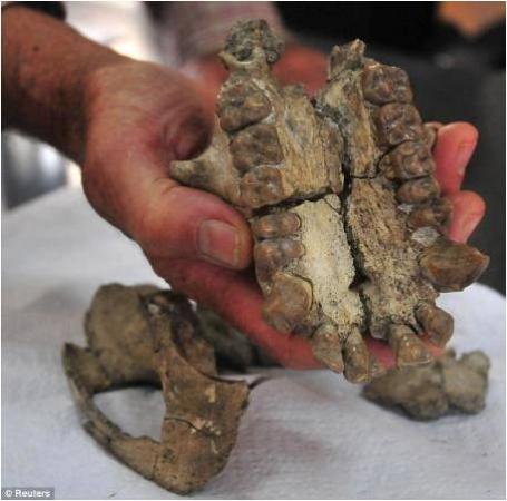这块化石保存得很完整:上面的尖牙显示在2000万年前,这是一只年龄在10岁左右的男性猿。(图)