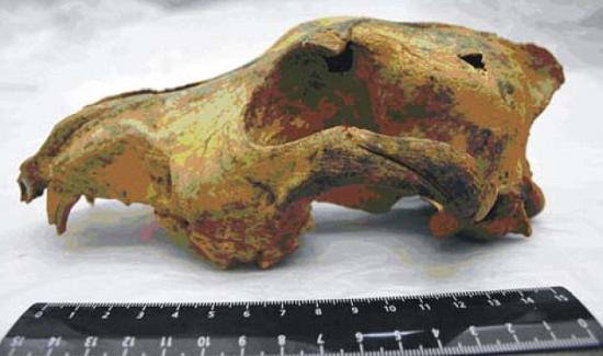 俄国考古学家们最近发现了距今已经有33000年历史的狗头骨化石,这块保存得相当完好的化石是在西伯利亚的阿尔泰山的一个山洞中发现的。