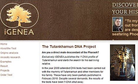iGENEA公司网站刊登的广告,声称向消费者提供DNA比对服务,帮助他们确定自己是否是法老王图坦卡蒙的后代。(图)