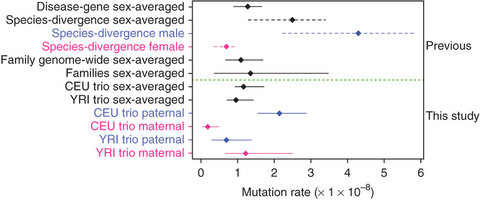 这样做的结果是,他们很快注意到,在一代人的时间内,子代基因变异的程度约为每1亿个基因编码出现1处变异。