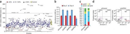 研究人员还检测了一些人类乳腺癌患者体内的这种蛋白质水平。结果发现,对于肿瘤内蛋白质LMTK3水平较高的患者,某些常规药物的疗效较弱,患者寿命更短。而因天然基因变异导致这种蛋白质水平较低的患者,往往能够活得更久。