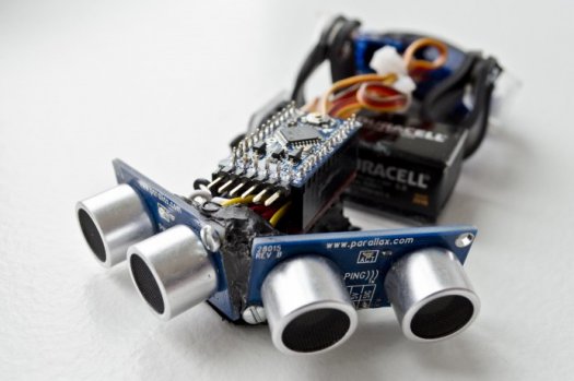 史蒂夫介绍,这款手套的制作原理和工艺并不复杂。手套的主体包括一个超声波感应器、一台小型伺服马达和一个迷你接口。超声波感应器位于手套的指关节部位上方,它发出的脉冲能够感应佩戴者附近1英寸(约2.5厘米)至10英尺(约3.1米)范围内的障碍物。伺服马达则根据脉冲反射回来的信号,向佩戴者的手腕施压。障碍物与佩戴者距离越近,手腕感受到的压力就越大。