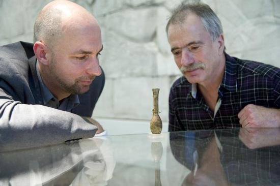 2009年,Müller在检测这只细口瓶时发现瓶颈中有东西塞在里面,开始以为那是“污垢”,但Müller认为它可能是原来的粘土塞。如果是这样的话细口瓶里很可能还保留有原来的东西。