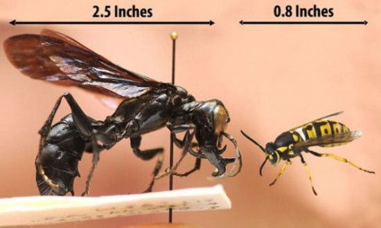 普通英国黄蜂(学名“vespula vulgaris”)与新发现的战士黄蜂体型对比