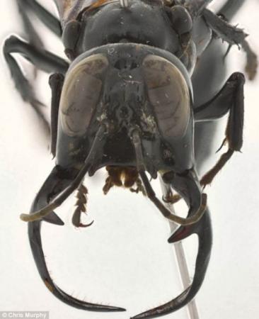 印度尼西亚偏远岛屿苏拉威西岛发现一种新黄蜂,被称之为“战士黄蜂”。这个可怕的黄蜂家族新成员颚部巨大,长度超过前腿。如果遭到它们的攻击,绝对是一场噩梦。这种黄蜂绰号“科莫多龙”,雄蜂的身长可达到2.5英寸(约合6.35厘米)。