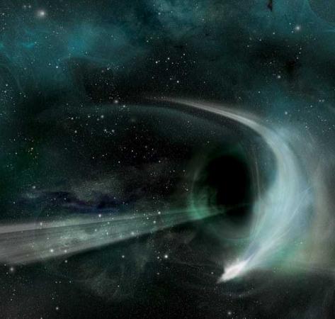 大卫•波鲁斯博士和来自宾夕法尼亚大学的科学团队说,对亮光束中紫外线的化学分析表明,能量喷流来自于一个是太阳质量100万倍的巨大黑洞。